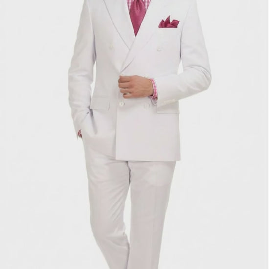 Make a bold and elegant statement with this men’s white double-breasted 3-piece suit set, crafted for premium formal occasions and refined styling. This suit features a sleek, structured silhouette made from high-quality blended fabric, ensuring comfort, durability, and a clean, polished appearance. The crisp white color delivers a striking, sophisticated look ideal for weddings, evening events, celebrations, and upscale social gatherings.