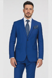 Mens 2 Button Classic Fit Basic Rayon Fabric Royal Blue Suit
