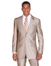 Featuring a sharp peak lapel, two-button closure, and a tailored fit, this suit exudes confidence and elegance. The tan shade gives it versatility for both daytime and evening occasions, while the shiny sharkskin finish adds a polished, upscale appeal.