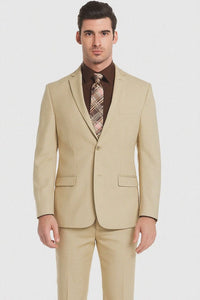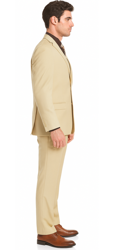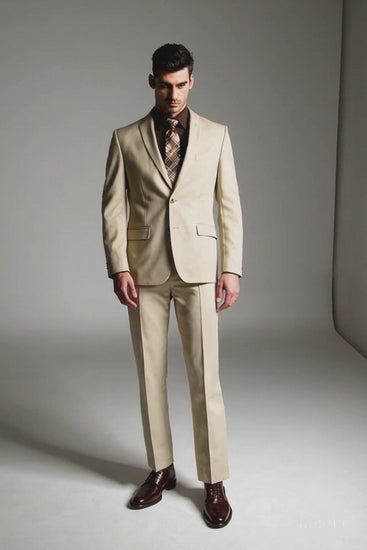 Mens 2 Button Slim Fit Rayon Fabric Suit in Beige