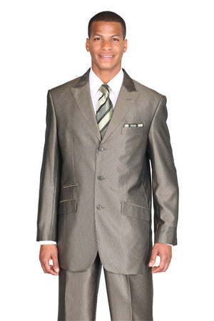 Mens 3 Button Classic Fit Tonal Sharkskin Peak Lapel Suit in Silver