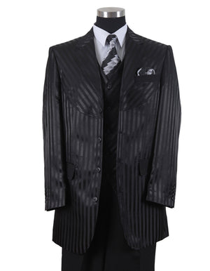 Mens 3 Button Ton on Ton Stripe Fashion Suit in Black