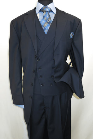 Mens 4 Button Double Breasted Vest Suit in Navy