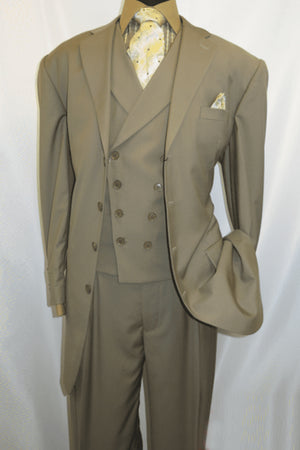 Mens 4 Button Double Breasted Vest Suit in Tan