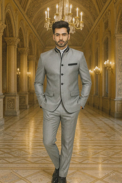 Whether you’re aiming for a charismatic entrance or a sleek, polished look, this Silver Grey Mandarin Tuxedo is designed to stand out with effortless sophistication.