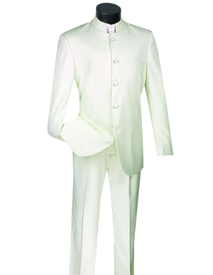 Mens 5 Button Mandarin Collar Tuxedo Suit in Ivory
