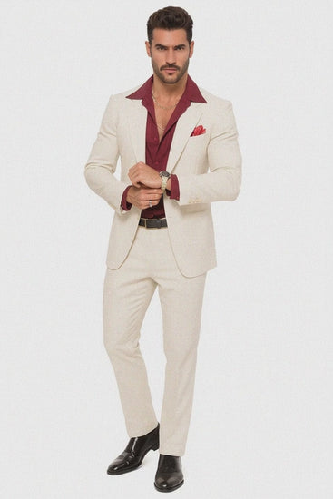 - Matching Trousers: Tapered for a modern fit. Trousers feature a six-inch drop, meaning the waist size is 6 inches smaller than the jacket size. Pants are unfinished at the bottom for custom hemming.