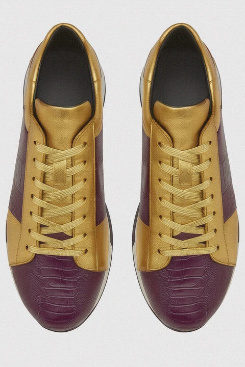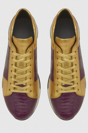 Men's Belvedere Blake Calf & Ostrich Leg Dress Sneaker in Purple & Gold