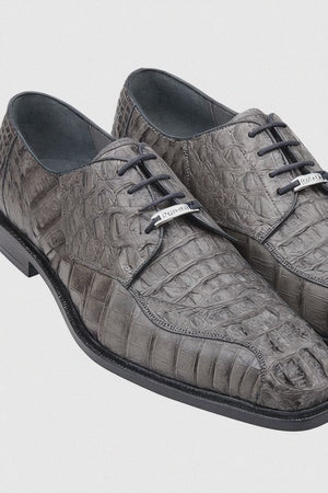 Mens Belvedere Chapo Caiman Crocodile Hornback Dress Shoe in Grey