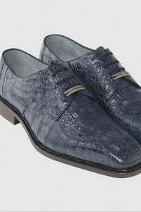 Mens Belvedere Chapo Caiman Crocodile Hornback Dress Shoe in Navy