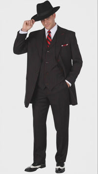 Mens Black and Red Pinstripe Zoot Suit – 1920s Gangster Vintage 3-Piece Suit for Formal, Prom, and Themed Events