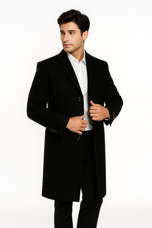 - 3 Button Black Ankle Length Wool Dress Top Coat/Overcoat | Winter Men's Topcoat Sale