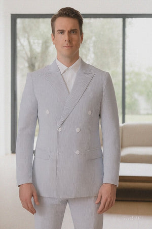 Mens Blue Pinstripe Summer Seersucker Double Breasted Suit