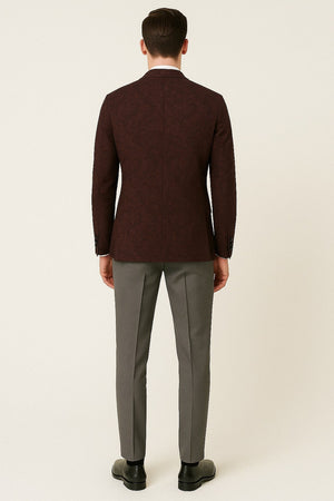 Mens Burgundy and Black Paisley Tuxedo Blazer – Slim Fit Formal Dinner Jacket