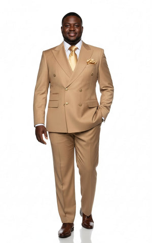 Mens Camel - Bronze - Goldish khaki Double-Breasted Suit – Luxury 2-Piece Formal Set with Gold Buttons and Peak Lapels by Rossi Man