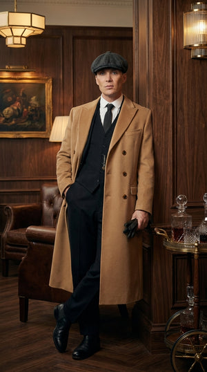 Inspired by 1920s vintage fashion, this Peaky Blinders style overcoat pairs perfectly with suits, waistcoats, dress shirts, and leather boots. The full-length design provides excellent cold-weather coverage, while the tailored structure delivers a refined and polished appearance.
