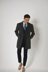 Men's Charcoal Grey Wool & Cashmere Overcoat – Classic Full Length