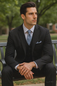 - A true gentleman’s suit that works for every occasion. The black color makes it versatile and always in style. The vest gives it an extra refined edge. I couldn’t be happier with this purchase. - Dominic Harrington