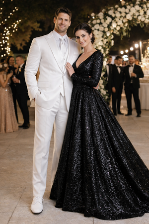 The white tuxedo color represents celebration, confidence, and standout elegance. Perfect for:
