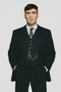 Attention to detail is what sets this outfit apart — from the button closure design and flap pockets to the vintage-inspired inner lining that reflects early 20th-century craftsmanship. The dark, neutral tones of the fabric make it easy to accessorize with a pocket watch, newsboy cap, or leather boots, helping you achieve the complete Peaky Blinders aesthetic. The combination of the vested suit and overcoat embodies both elegance and edge — the hallmark of the Thomas Shelby persona.