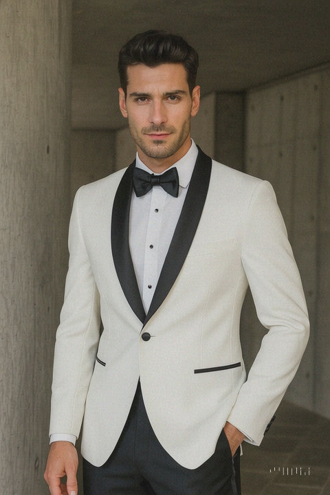 Mens Designer Ivory & Black Traditional Shawl Dinner Jacket
