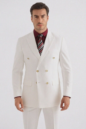 Mens Double Breasted Rayon Fabric Dress Blazer in White