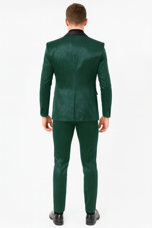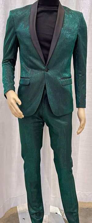 Turn heads at any event with this emerald green shiny stripe tuxedo suit, designed for men who appreciate bold fashion and luxury tailoring. This stunning 2-piece ensemble features a sleek slim fit with vertical shimmering stripes that reflect light for a high-impact, elegant look.