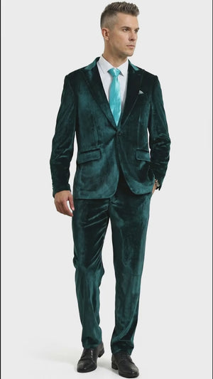 Mens Emerald Green Teal Blue Velvet Suit – Luxury Two Piece Formal Evening Suit