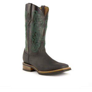 Mens Ferrini Maverick Square Toe Leather Cowboy Boot in Black & Mint