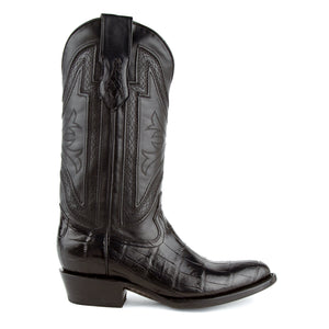 Mens Ferrini Medium Round Toe Alligator Belly Cowboy Boot in Black