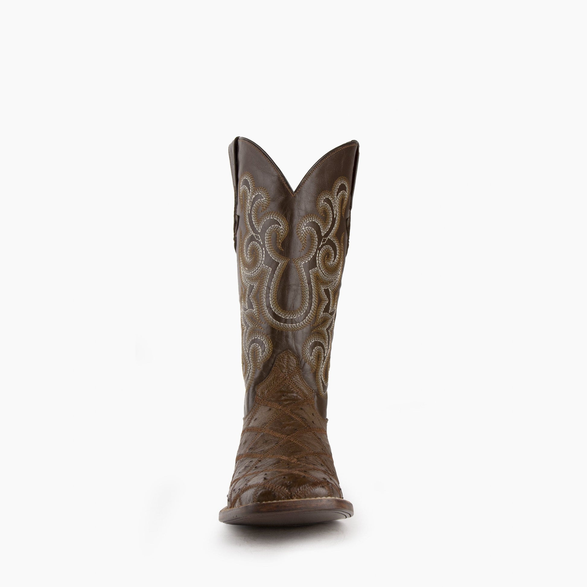 Mens Ferrini Ostrich Quill Patchwork Cowboy Boot in Kango Tabac