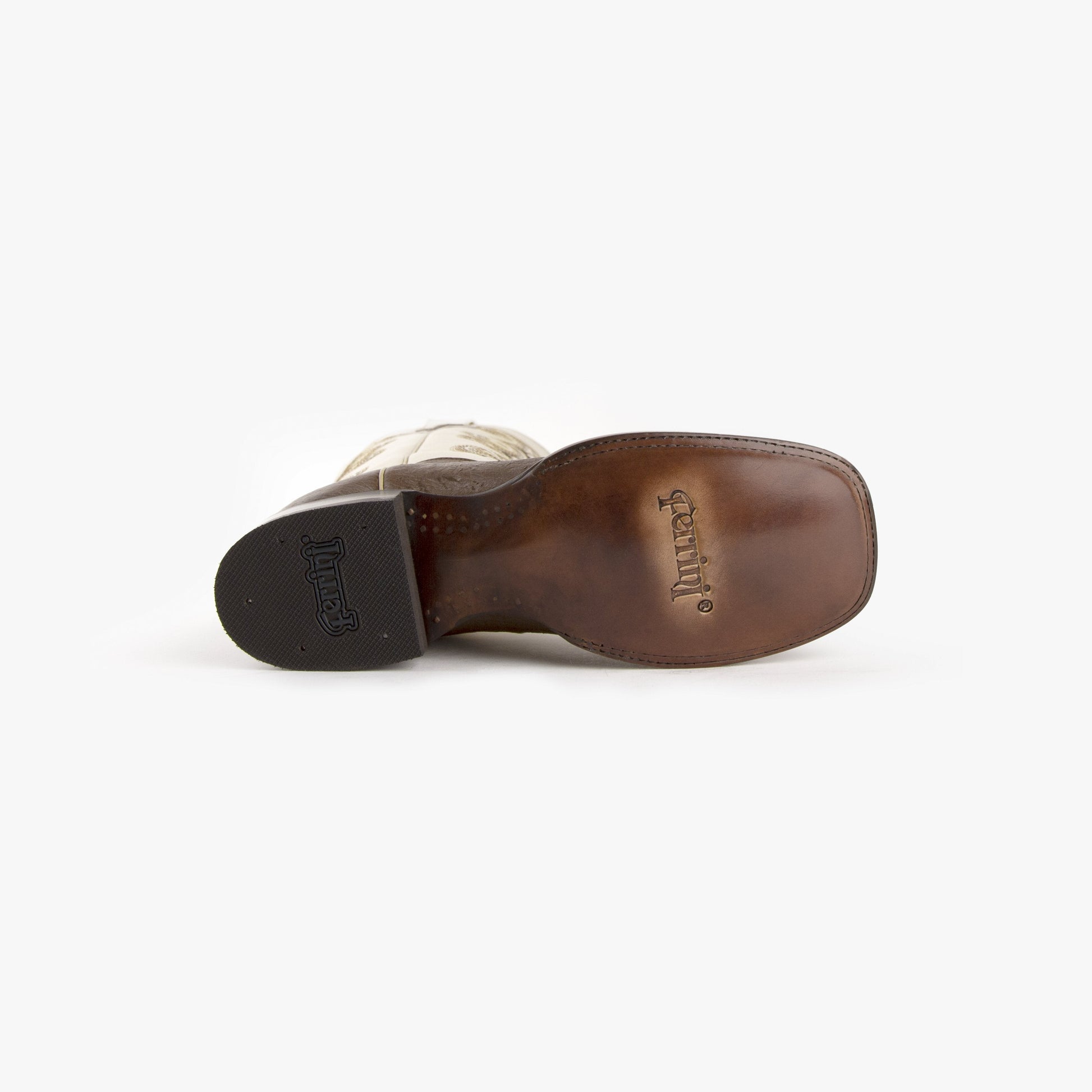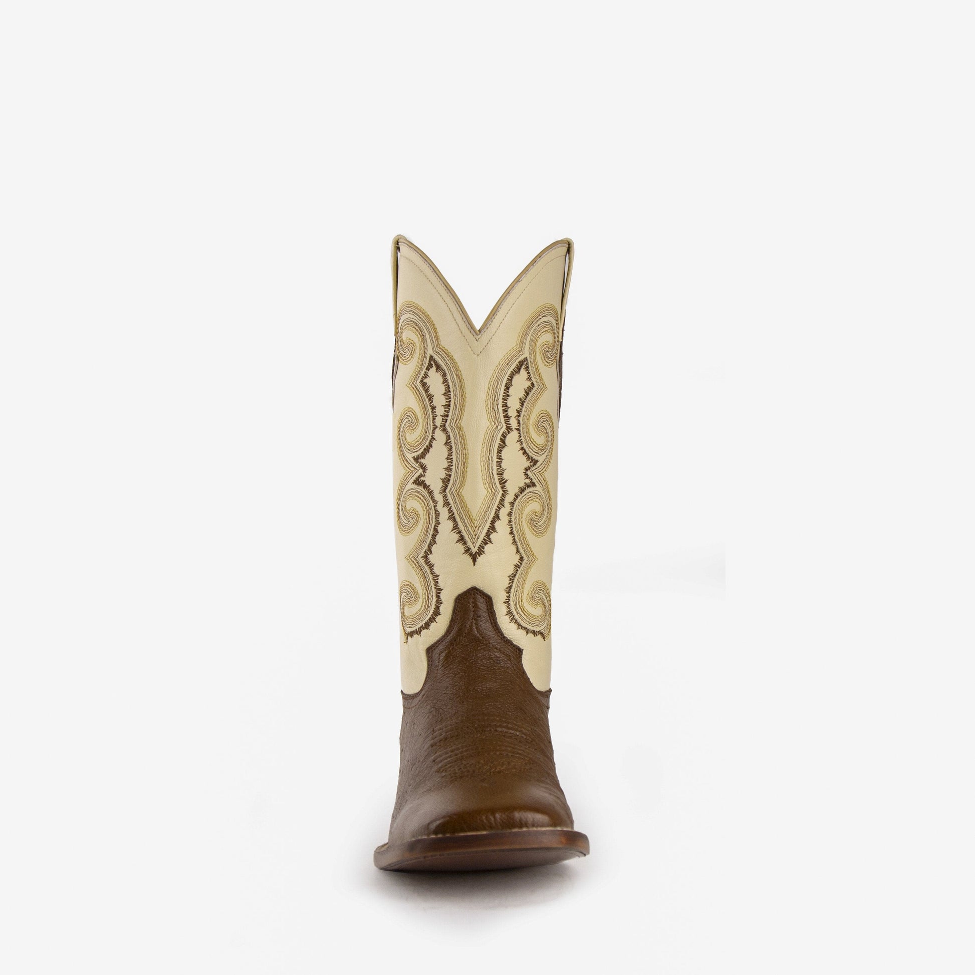 Mens Ferrini Square Toe Smooth Ostrich Cowboy Boot in Kango Tabac & Pearl