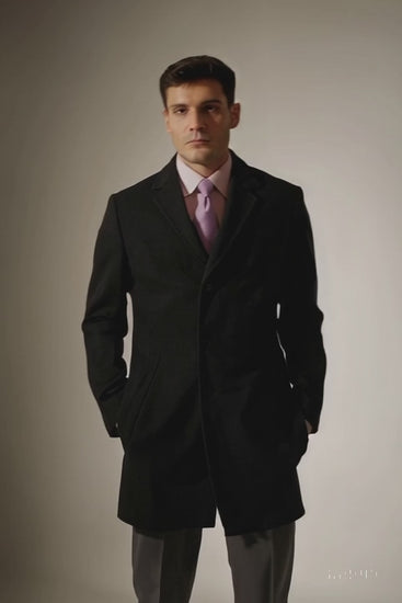 Classic full-length overcoat crafted from a premium wool and cashmere blend for warmth and sophistication. Features a 3-button single-breasted front, notch lapel, slanted front pockets, and a center vent for ease of movement. Ideal for weddings, proms, business, and formal events .Single Breasted, Full Length Overcoat, Notch Lapel, 3 Button, Center Vent, Wool & Cashmere Blend,