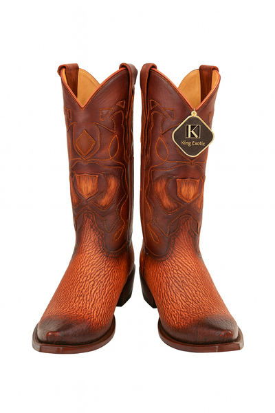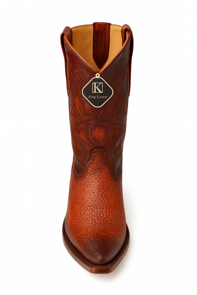 Men's King Exotic Snip Toe Sharkskin Boots Handcrafted Burnished Cognac (494RD0903)