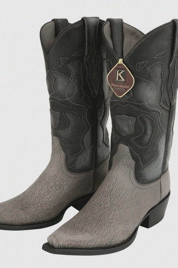 Step into bold western style with the Men’s King Exotic Snip Toe Sharkskin Boots in Gray, a handcrafted masterpiece that combines rugged durability with refined luxury. Built from genuine sharkskin leather, these boots feature a distinctive textured finish, ensuring every pair has a unique look and long-lasting wear. With their classic snip toe profile, traditional western stitching, and premium leather sole, these boots are designed for men who value authenticity, craftsmanship, and timeless style.