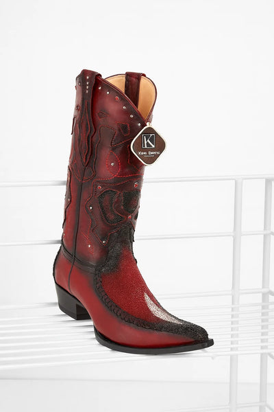 Men’s King Exotic Single Stone Stingray Boots – 3X Toe – Burgundy Burnished
