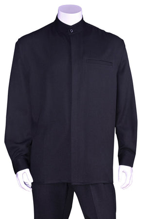 Mens Long Sleeve Mandarin Collar Casual Leisure Set in Navy