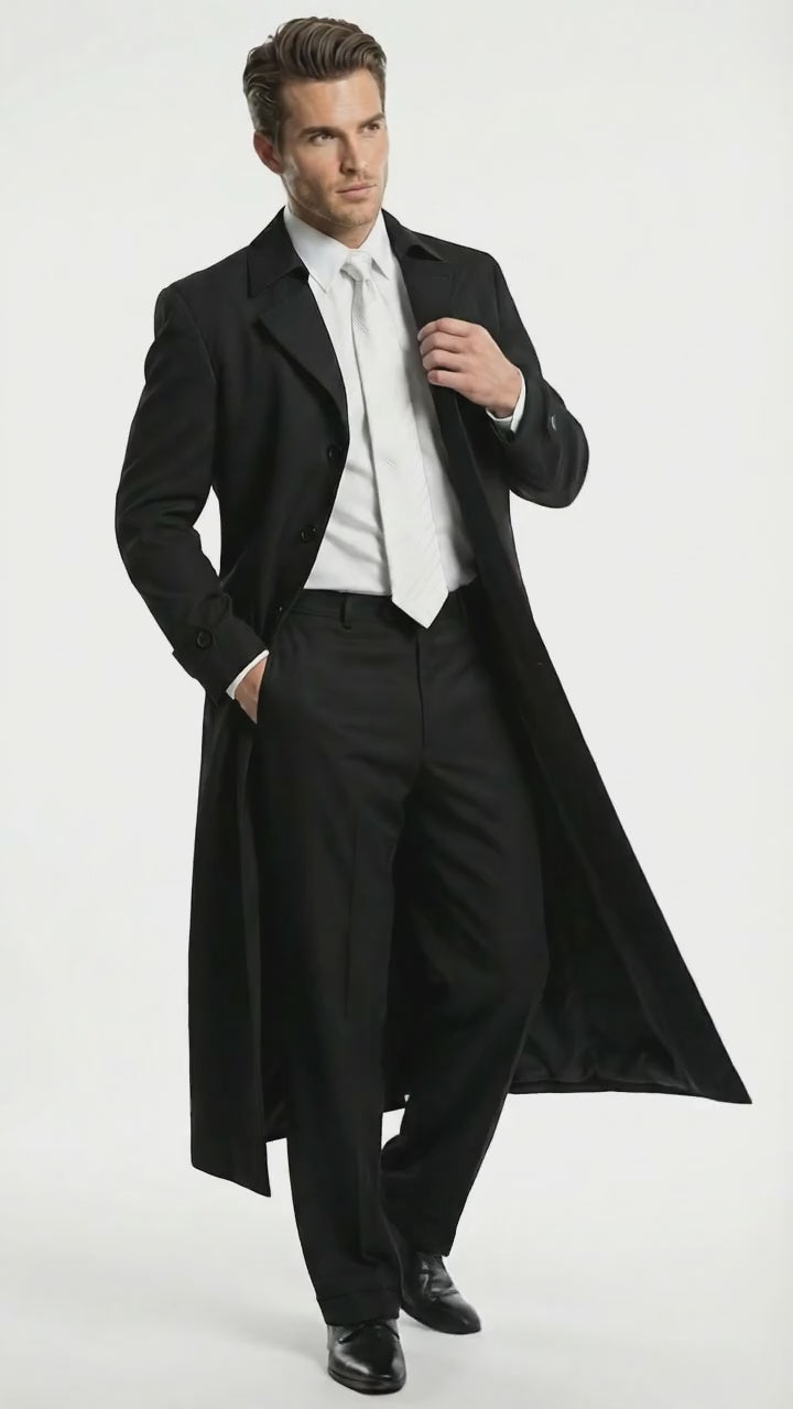 Men's Maxi Black Full Length Zoot Suit – Vintage Gangster Style Long Coat Formal Suit