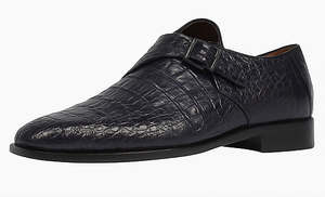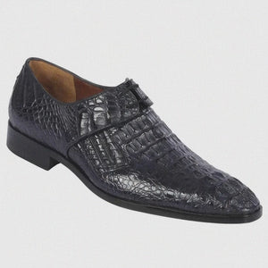 Men’s Navy Genuine Crocodile and Calfskin Leather Slip-On Dress Shoes