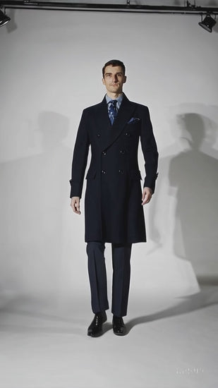 "Men's Navy Wool Peacoat – Double Breasted 3/4 Length Overcoat"