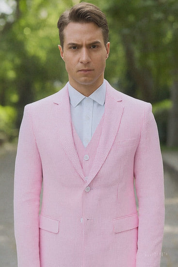Mens Pink Pinstripe Vested Summer Seersucker Suit