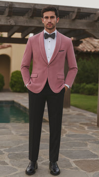 - Luxurious pink velvet tuxedo jacket with shawl lapel