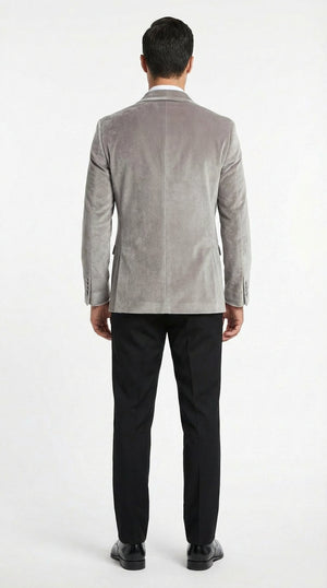 Men's Platinum Velvet Dinner Jacket with Satin Shawl Lapel | Formal Wedding Prom Blazer