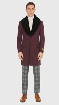 Mens Purple Pimp Coat - Overcoat with Black Faux Fur Collar – Luxury Winter Dress Coat for Formal and Casual Wear
