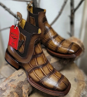 Men's Quincy Alligator Print Square Toe Ankle Boots - Tobacco