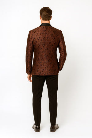 Mens Rust Copper Brick Color Paisley Tuxedo Jacket Dinner and Wedding Blazer With Black Pants Matching Bowtie