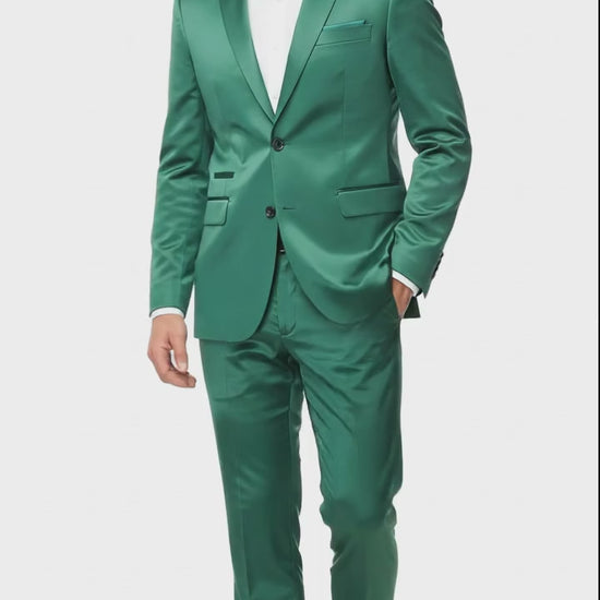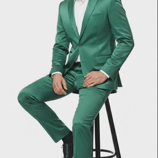 Mens Shiny emerald Green Sateen 2-Piece Slim Fit Suit – Formal Blazer and Pants Set Prom Wedding