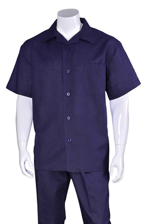Mens Short Sleeve 100% Linen Casual Leisure Set Walking Suit in Navy