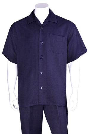 Mens Short Sleeve Casual Summer Walking Suit in Solid Navy