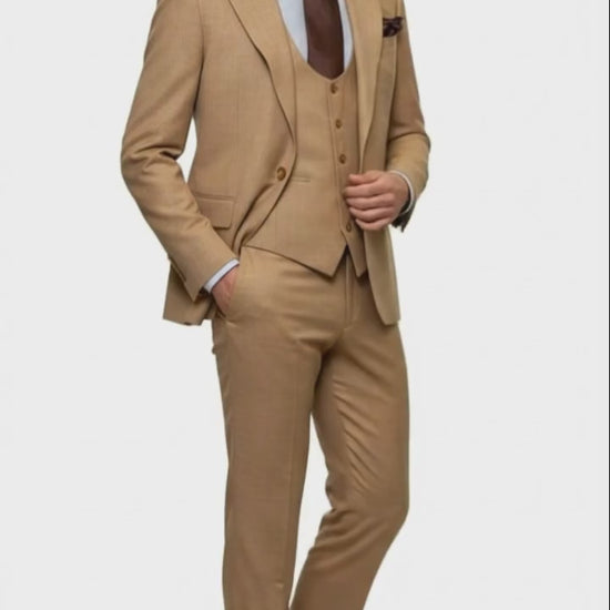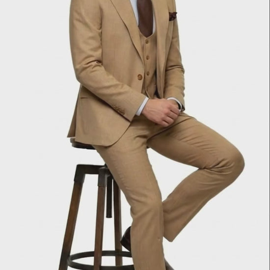 Men's Tan Three-Piece Suit with Vest – Classic Tailored Fit in camel khaki Bronze color By Rossiman